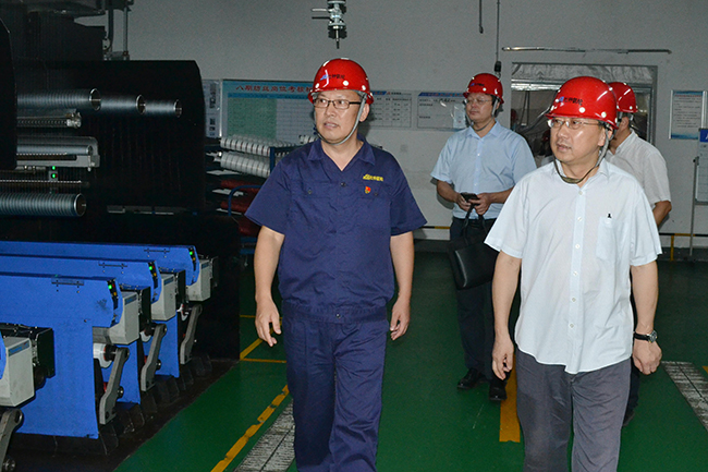 副局長丁燦一行先后參觀了公司展廳、黨員活動室、抖音直播間、八期生產(chǎn)線、自動化包裝線等。參觀過程中,公司黨委書記趙萬明對氨綸公司的發(fā)展歷程,差別化產(chǎn)品、戰(zhàn)略優(yōu)勢作了詳細介紹,在隨后的交流會上,公司黨委書記趙萬明對公司運作模式、經(jīng)營理念、社會效益和發(fā)展戰(zhàn)略規(guī)劃等進行了詳細介紹。副局長丁燦對我司的運作模式和規(guī)范的經(jīng)營給予充分的鼓勵和肯定,希望公司在持續(xù)發(fā)展、穩(wěn)健經(jīng)營的前提下,適時調(diào)整,增強靈活性與機動性,為行業(yè)發(fā)展做出更大的貢獻。