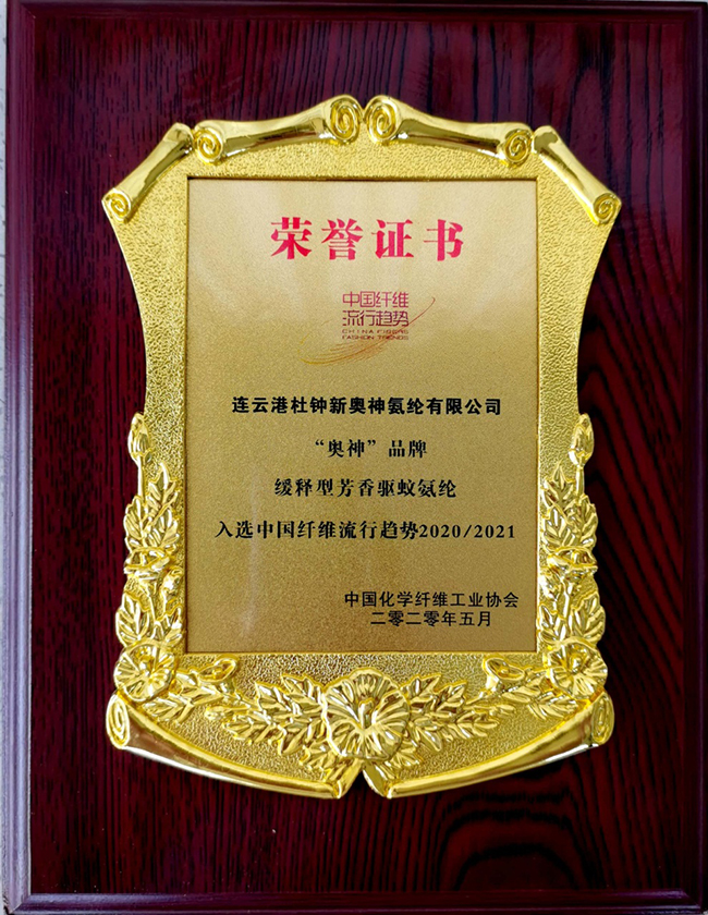 近年來(lái),氨綸公司緊跟時(shí)代步伐,牢牢把握流行趨勢(shì),不斷提升研發(fā)能力,致力于高品質(zhì)、差別化氨綸纖維的研發(fā)、生產(chǎn)和應(yīng)用,先后開(kāi)發(fā)了超柔、高回彈、原液著色、可染、衛(wèi)材、多彩、石墨烯、低溫?zé)嵴澈?、?qū)蚊、抗菌等系列氨綸產(chǎn)品,多項(xiàng)產(chǎn)品處于同行業(yè)前列。此次,氨綸公司“奧神”品牌緩釋型芳香驅(qū)蚊氨綸成功入選“中國(guó)纖維流行趨勢(shì)2020/2021”,再次證明了我公司在市場(chǎng)需求研判及新產(chǎn)品開(kāi)發(fā)方面的實(shí)力,也進(jìn)一步提振了“奧神”品牌的影響力。