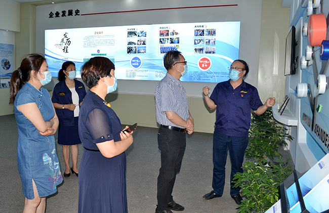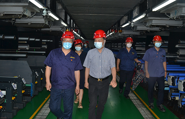 張仲文一行先后參觀了公司產(chǎn)品展廳、八期生產(chǎn)線、研發(fā)中心,公司總經(jīng)理張斌對(duì)我公司的發(fā)展歷程,差別化產(chǎn)品、戰(zhàn)略?xún)?yōu)勢(shì)等進(jìn)行了詳細(xì)介紹,張仲文對(duì)我公司低溫?zé)嵴澈习本]、抗菌氨綸、驅(qū)蚊氨綸及氨綸生產(chǎn)全流程自動(dòng)化、智能化生產(chǎn)線等給予了高度評(píng)價(jià)。