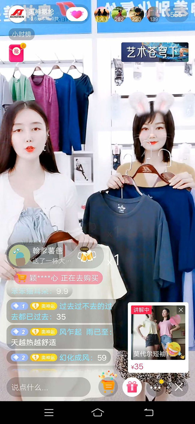 活動中,公司總經(jīng)理張斌為直播活動開幕致辭。張斌總經(jīng)理表示,連云港杜鐘新奧神氨綸有限公司作為國有企業(yè),將積極借助網(wǎng)絡(luò)直播平臺,探索電商線上發(fā)展新模式,把奧神氨綸的商品更好地推向市場?;顒又?,我們邀請知名主播為線上的觀眾們帶來了具有專利抗菌作用的內(nèi)褲、連褲襪、家居服、莫代爾T恤等產(chǎn)品。通過開啟“云逛街”模式,帶領(lǐng)大家在抖音淘寶平臺感受奧神氨綸的產(chǎn)品和企業(yè)文化。