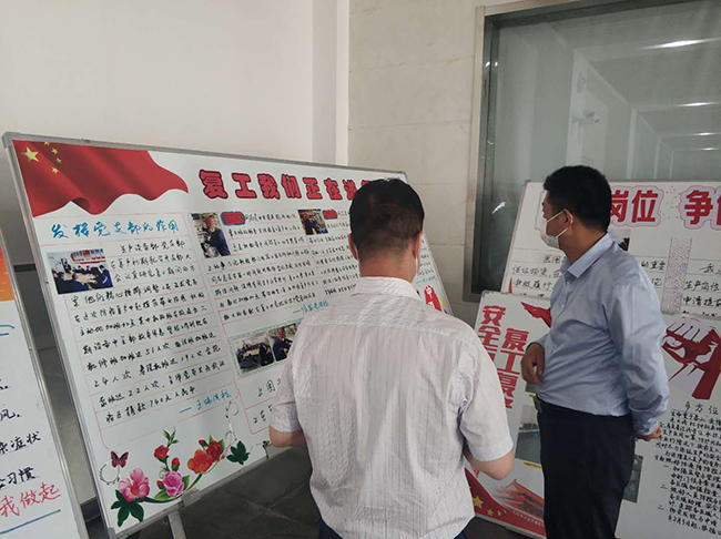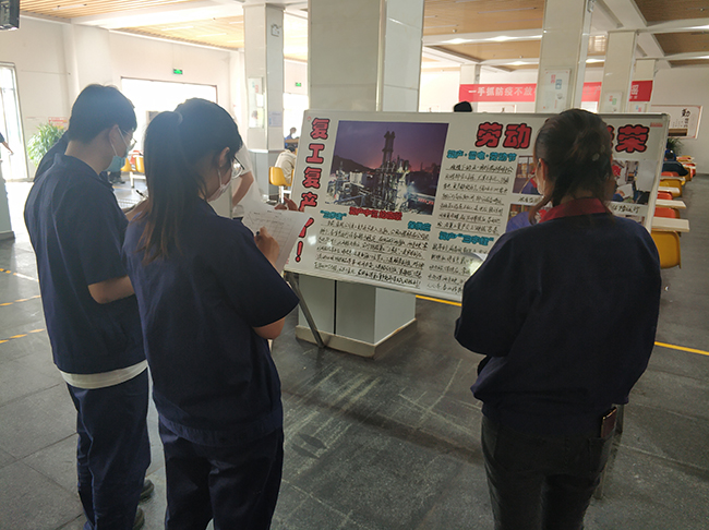 5月21日,公司開展了以“抗疫情•復(fù)工復(fù)產(chǎn)”為主題的板報(bào)評(píng)比活動(dòng)。來(lái)自生產(chǎn)一部、生產(chǎn)二部、品保部、公用工程部、生產(chǎn)設(shè)備部、技術(shù)研發(fā)部以及管理部門的7個(gè)部門參加了評(píng)比。