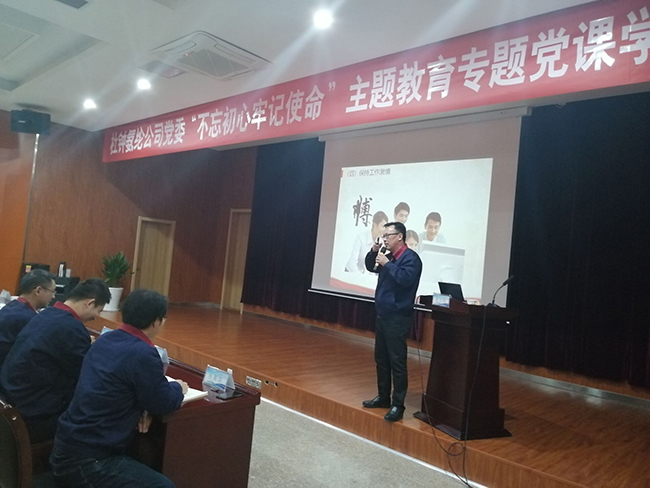 11月9日,氨綸公司黨委召開(kāi)“不忘初心 牢記使命”主題教育專(zhuān)題黨課學(xué)習(xí)會(huì)。公司黨委書(shū)記趙萬(wàn)明同志圍繞“什么是初心、為什么要不忘初心、怎樣做到不忘初心”三個(gè)方面進(jìn)行了闡述、講解。學(xué)習(xí)會(huì)上,趙書(shū)記用生動(dòng)的案例闡明道理,用詳實(shí)的數(shù)據(jù)說(shuō)明問(wèn)題,與會(huì)代表產(chǎn)生了巨大共鳴。大家一致認(rèn)為這通過(guò)堂學(xué)習(xí)會(huì)的學(xué)習(xí),大家在精神上受到了洗禮,決心不忘初心、牢記使命,立足本職工作,推動(dòng)企業(yè)發(fā)展。公司領(lǐng)導(dǎo)班子成員、各部門(mén)助理及以上人員、管理部門(mén)所有員工和黨員代表參加學(xué)習(xí)會(huì)。集團(tuán)指導(dǎo)組領(lǐng)導(dǎo)王果、王琪參加。