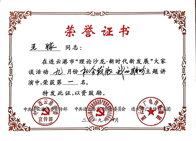 2019年10月11日,由連云港市委宣傳部、市國(guó)資委、連云港廣電傳媒集團(tuán)聯(lián)合舉辦的“連云港市‘理論沙龍新時(shí)代新發(fā)展’大家談”活動(dòng)隆重舉行。此次主題演講活動(dòng)的主題是“社會(huì)發(fā)展 我的期盼”。來(lái)自贛榆區(qū)稅務(wù)局、市農(nóng)發(fā)局、市交通控股、城投集團(tuán)等12家單位的代表同場(chǎng)競(jìng)技,展開(kāi)激烈角逐。