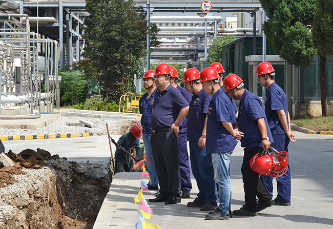 楊董事長(zhǎng)深入一線實(shí)地察看了氨綸公司施工現(xiàn)場(chǎng)、生產(chǎn)車間、精制罐區(qū)、危廢庫(kù)等,詳細(xì)詢問(wèn)了氨綸公司安全、消防、監(jiān)控設(shè)施的運(yùn)行情況。楊董事長(zhǎng)在檢查中強(qiáng)調(diào):近期,從中央到地方對(duì)安全生產(chǎn)工作的要求提升到了一個(gè)新的高度,大家務(wù)必要進(jìn)一步提高安全生產(chǎn)意識(shí),完善安全檢查制度、落實(shí)隱患整改。一定要切實(shí)加強(qiáng)安全培訓(xùn),利用班前早會(huì)鞏固安全規(guī)范、嚴(yán)守勞動(dòng)紀(jì)律。強(qiáng)化日常安全管理,認(rèn)真落實(shí)好節(jié)日期間應(yīng)急管理和值班制度,對(duì)設(shè)備進(jìn)行全面檢查維護(hù),通過(guò)扎實(shí)有效的舉措確保節(jié)日期間安全生產(chǎn)平穩(wěn)運(yùn)行。