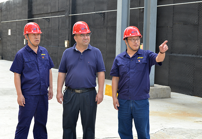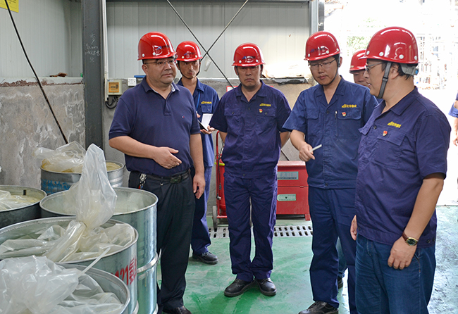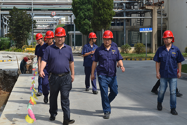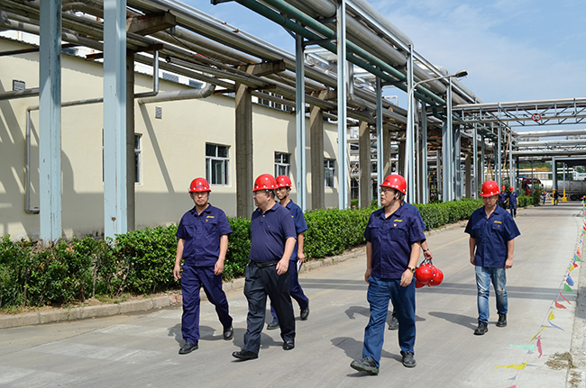 中秋、國(guó)慶臨近,為確保節(jié)日期間安全生產(chǎn),9月6日上午集團(tuán)公司黨委書記、董事長(zhǎng)楊龍來(lái)氨綸公司檢查安全生產(chǎn)工作。公司黨委書記趙萬(wàn)明、總經(jīng)理張斌、副總經(jīng)理?xiàng)钌阃?span lang="EN-US">