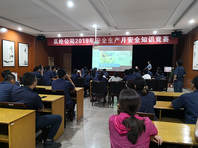 氨綸公司積極響應(yīng)國家安全月活動(dòng),緊扣2019年安全月“防風(fēng)險(xiǎn),除隱患,遏事故”的活動(dòng)主題,由安全部主辦,7月5日,在公司多功能廳舉辦了2019年安全生產(chǎn)月安全知識(shí)競賽,此次活動(dòng)共有八支代表隊(duì)選手參加了比賽。