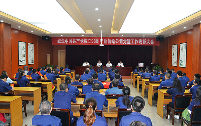 2019年7月1日,在中國共產(chǎn)黨98周年華誕之際,氨綸公司召開紀(jì)念中國共產(chǎn)黨成立98周年暨七一表彰大會。