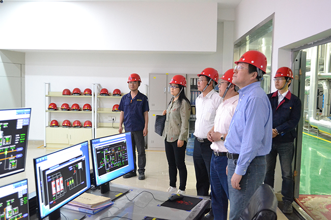 5月15日,江蘇海企集團黨委副書記楊笠、投資發(fā)展部梁錦海、副總經理胡瑞芳一行赴我公司參觀調研,氨綸公司領導班子陪同。