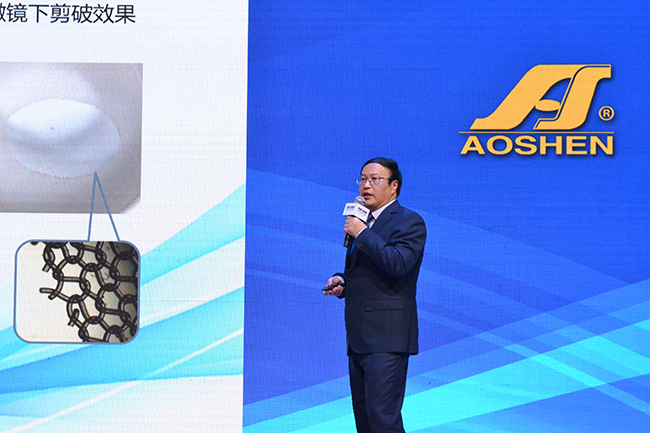 3月13日,“融-合”奧神氨綸新產(chǎn)品發(fā)布會在上海國家會展中心成功舉辦!中國工程院院士蔣士成、中國化學纖維工業(yè)協(xié)會副會長賀燕麗、趙向東等嘉賓蒞臨現(xiàn)場,在國內(nèi)外的眾多客戶代表、觀眾共同見證下,氨綸公司低溫熱粘合氨綸和石墨烯氨綸兩大新產(chǎn)品正式面市。為期3天的展會上,有將近500位訪客前來氨綸公司展位咨詢洽談,特別是吸引到來自美國、德國、土耳其、日本、巴基斯坦、伊朗等眾多國外客商的熱切關注。