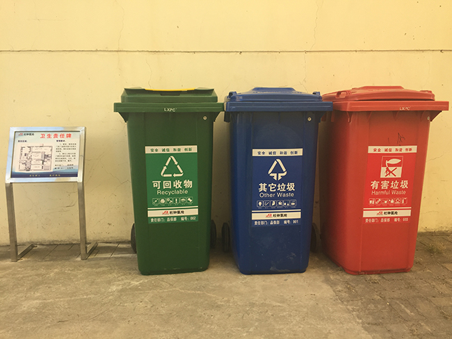 垃圾分類是對垃圾收集處置傳統(tǒng)方式的改革,是對垃圾進行有效處置的一種科學管理方法。近日,氨綸公司全面響應市委市政府創(chuàng)建國家級文明城市的號召,實施垃圾分類管理,在廠區(qū)內(nèi)設置了三類垃圾箱-----綠色(可回收垃圾箱)、藍色(其它垃圾箱)、紅色(有害垃圾箱),垃圾箱上詳細標明各垃圾類具體分類,責任區(qū)域及責任人,做到分類管理、責任到人。