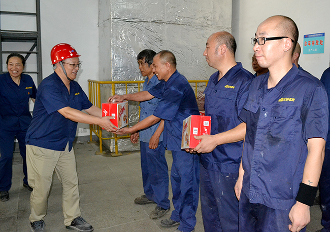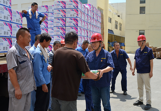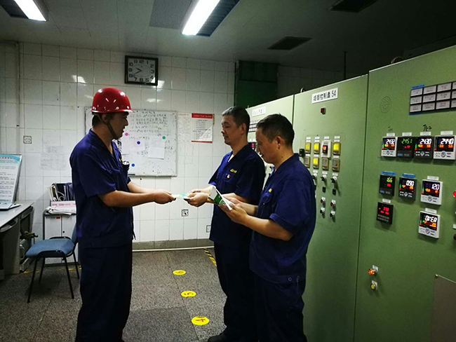 送清涼。今年七八月,我市持續(xù)高溫,氨綸公司工會牽頭辦公室向一線員工送防暑降溫用品,在炎炎夏日為一線員工送去雪糕、飲料、礦泉水等飲品和工會“娘家人”的問候。食堂每日為員工提供綠豆湯、西瓜等夏季瓜果,讓一線工人們在酷暑中感受到了一絲舒心的涼意。為了防止高溫季節(jié)突發(fā)意外,公司安全部購買藿香正氣水、人丹、風(fēng)油精、速效救心丸、燙傷膏、瀉立停等應(yīng)急藥品發(fā)放到各生產(chǎn)部門,為員工平安度夏做好預(yù)防工作,切實(shí)保障他們的身體健康。