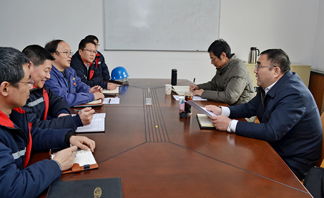 2018年3月22日,集團公司董事長楊龍、副總經(jīng)理張其海赴氨綸公司開展調(diào)研工作。楊董事長一行實地查看了氨綸公司分布式能源設(shè)備安裝、八期工程建設(shè)施工現(xiàn)場,并組織氨綸公司領(lǐng)導班子成員召開了座談會。