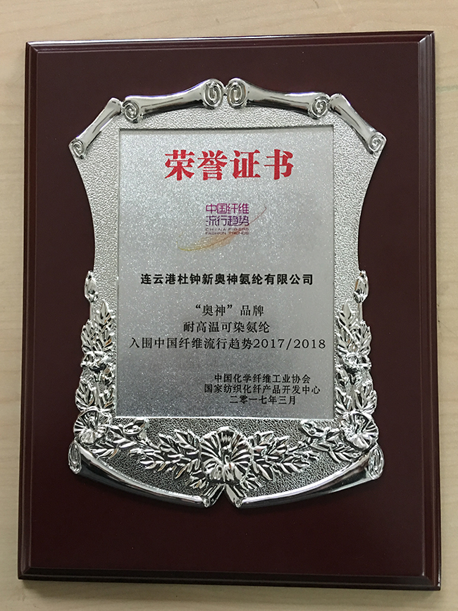 近年來,氨綸公司緊緊把握流行趨勢,緊跟時代步伐,牢固樹立以“新品研發(fā)促企業(yè)發(fā)展”的戰(zhàn)略目標,將新品研發(fā)作為企業(yè)發(fā)展的核心,不斷加大研發(fā)投入,陸續(xù)開發(fā)出超柔、耐高溫、有色、衛(wèi)材等多系列產品,多項產品處于同行業(yè)前列。此次,氨綸公司“奧神”品牌耐高溫可染氨綸成功入圍“中國纖維流行趨勢2017/2018”,再次證明了我公司在新品研發(fā)和把握市場方面的實力,也進一步擴大了“奧神”品牌的影響力。