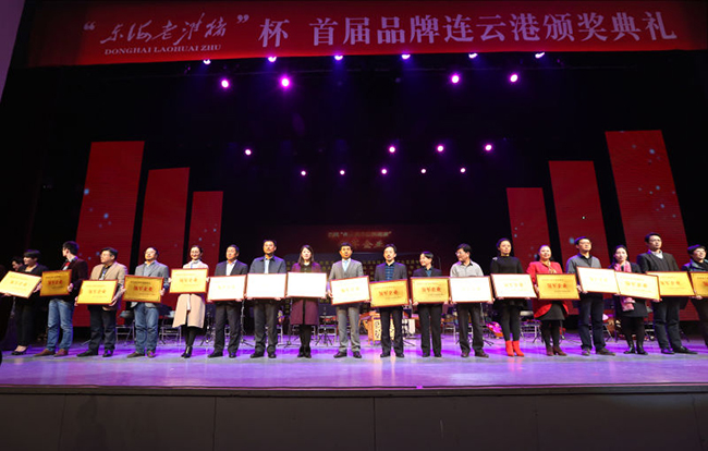 晚上,首屆連云港市品牌建領(lǐng)軍企業(yè)、連云港市品牌建設(shè)知名企業(yè)、連云港市自主品牌建設(shè)領(lǐng)軍人物、連云港市自主品牌建設(shè)創(chuàng)新人物頒獎(jiǎng)典禮在連云港市文化藝術(shù)中心舉行,副市長(zhǎng)徐家保親臨現(xiàn)場(chǎng)并為獲獎(jiǎng)單位頒獎(jiǎng)。