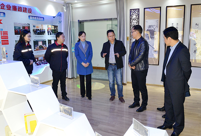 2018年11月29日,連云港市紀(jì)委宣傳部部長蔣頌華帶領(lǐng)驗收組赴杜鐘氨綸公司開展“市級廉政文化教育基地”驗收工作,集團公司紀(jì)委書記汪群、副書記王建松陪同。