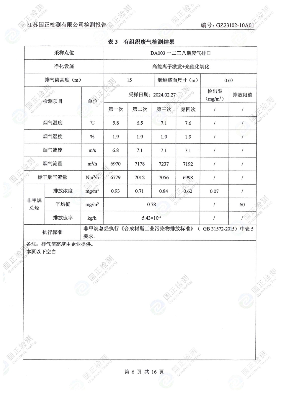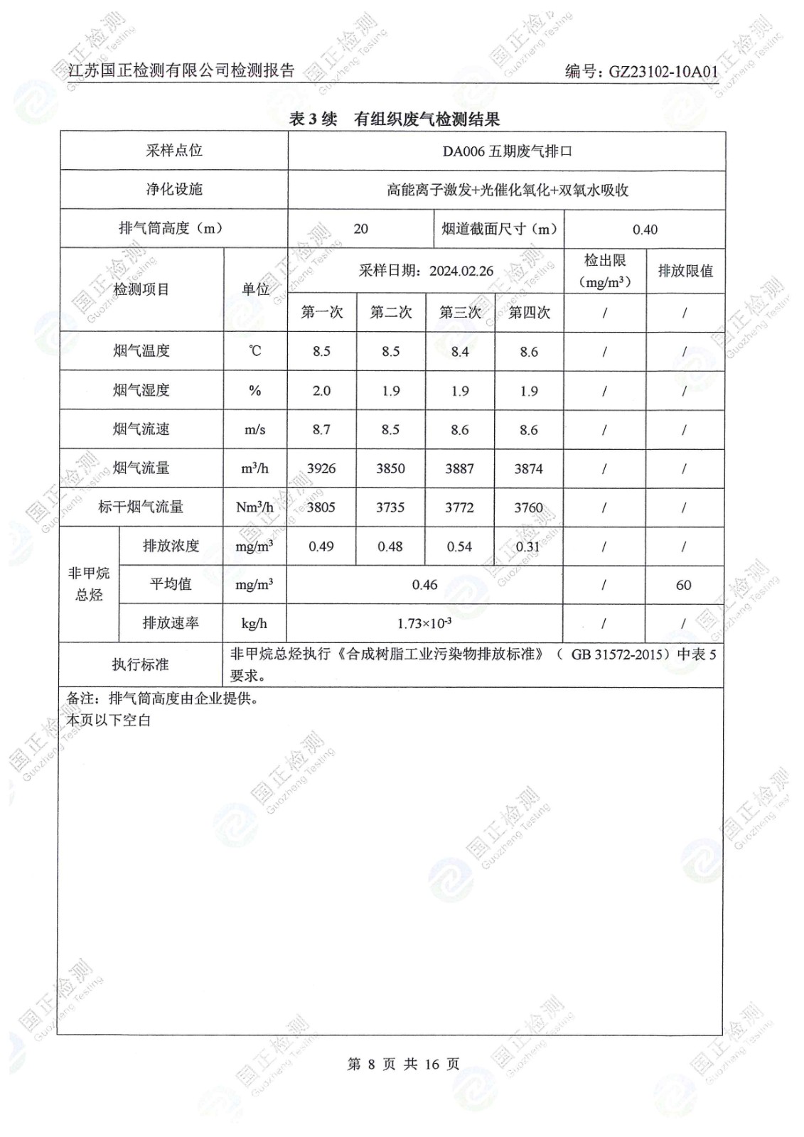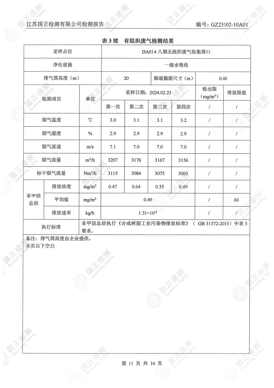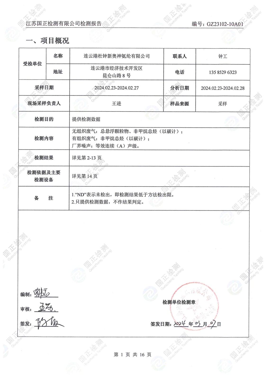 杜鐘氨綸2月檢測 23102-10A01杜鐘年排污檢測報告
