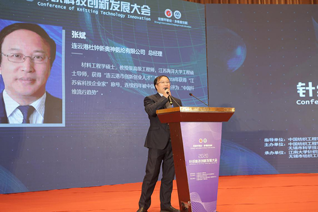 12月4日,由中國紡織工程學(xué)會針織專業(yè)委員會、無錫市科協(xié)主辦,江南大學(xué)針織技術(shù)教育部工程研究中心、無錫市紡織工程學(xué)會承辦的2020針織科技創(chuàng)新發(fā)展大會在無錫舉行,奧神®氨綸公司總經(jīng)理張斌帶隊(duì)參加了本次大會,并作題為《健康功能性氨綸的開發(fā)和應(yīng)用》的報告。