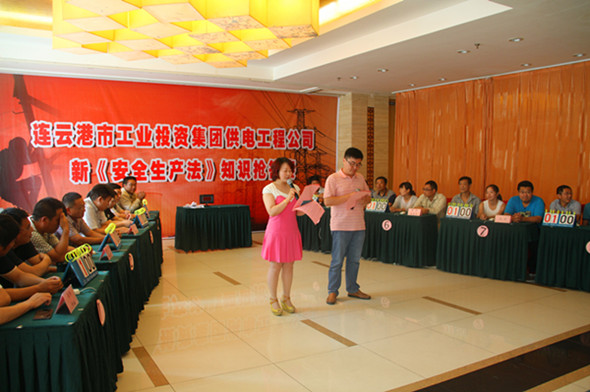 為了增強(qiáng)企業(yè)員工的安全意識,強(qiáng)化安全生產(chǎn)依法治理。近日,公司在淮鹽大酒店舉行安全知識搶答賽。來自該公司機(jī)關(guān)及各單位的8支代表隊(duì)共24名選手參加了比賽。
