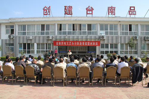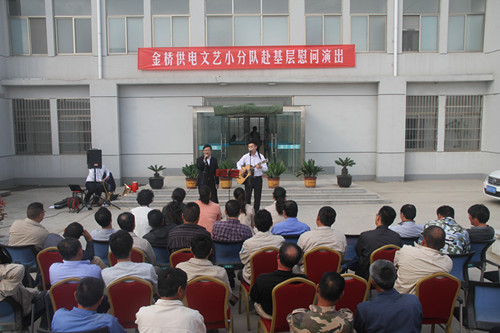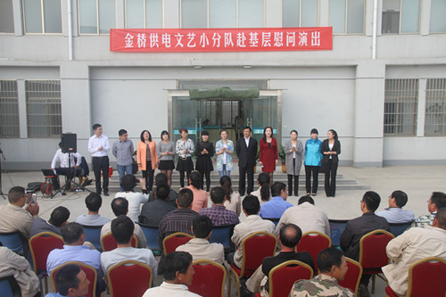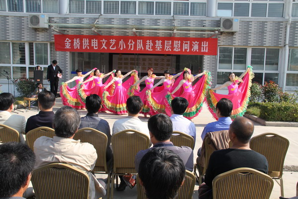 近日,為慶祝建國65周年,進一步踐行黨的群眾路線,豐富基層職工文化生活,公司工會組織文藝小分隊深入供電所等基層單位巡回慰問演出,為一線職工送去精彩紛呈的“文化大餐”,贏得了基層職工群眾一致好評。 在臨時搭建的舞臺上,文藝小分隊自編自演的的歌舞、相聲、詩朗誦、器樂彈唱等豐富多彩的節(jié)目,貼近基層,貼近生活,謳歌金橋供電十年成就,展示金橋供電職工風采,贏得了現(xiàn)場觀眾陣陣掌聲。中間還穿插了擊鼓傳花觀眾互動節(jié)目,基層職工踴躍參與,氣氛活躍。最后,演出在會場全體人員齊唱《歌唱祖國》中圓滿落下帷幕。 公司自成立以來,一直注重企業(yè)文化建設(shè),利用多種形式活躍基層文化生活,滿足員工多層次、多角度的精神需求。不僅加強基層單位“職工小家”建設(shè),建立了“職工書屋”、職工活動室、乒乓球室、羽毛球活動場地等基礎(chǔ)設(shè)施,還舉辦了職工運動會、籃球賽和文藝演出等活動。不僅發(fā)揮傳統(tǒng)職工文化活動的優(yōu)勢,而且還創(chuàng)新具有時代特色文化活動的形式,不斷增強員工的凝聚力和向心力。通過本次深入基層慰問演出,不僅為戰(zhàn)斗在一線的基層職工獻上一份精神“大餐”,同時也展示了金橋供電的良好作風和企業(yè)形象。(趙艷)