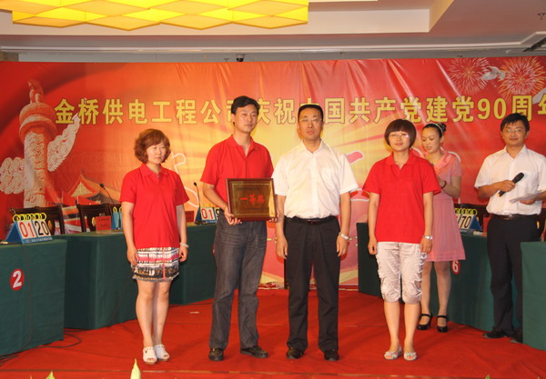 6月29日,公司舉行紀(jì)念建黨90周年知識搶答賽,共有八支代表隊參加。經(jīng)過角逐,公司機關(guān)黨支部代表隊、灌西供電所黨支部代表隊和徐圩供電所黨支部代表隊分獲一、二、三等獎。(司宣)