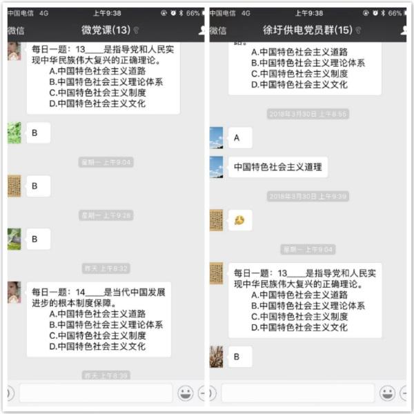 為促進黨員更好的了解十九大精神,切實做到學(xué)懂弄通做實,公司黨委充分發(fā)揮微信網(wǎng)絡(luò)平臺靈活便捷、互動性強的優(yōu)勢,開展了“微考堂”“每日一題”學(xué)習(xí)活動。公司黨群工作部每日通過微信群出題,大家搶答。題目緊扣十九大會議精神、習(xí)總書記講話精神、新黨章等重點內(nèi)容,并定期組織黨員開展網(wǎng)絡(luò)答題考核,確保黨員真學(xué)真做。(電宣)