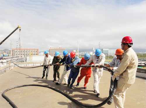 此項工程線路鋪設(shè)需經(jīng)過300多米地下頂管、200多米的空中橋架和多個電纜井。較之以往施工難度更大:一是高空作業(yè)多,施工進(jìn)度難以把握;二是人員負(fù)荷大,電纜需穿過多處交叉橋架,工程機械不能較好的發(fā)揮作用,大量的工作需要人力完成;三是天公不作美,從30日開始,陣雨雷雨不斷,現(xiàn)場施工人員的衣服也多次濕透。