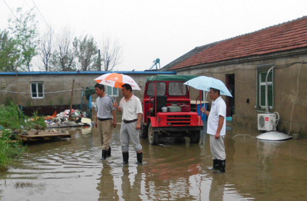 7月9日上午一上班,宋跳農(nóng)場(chǎng)場(chǎng)長(zhǎng)趙懷忠?guī)ьI(lǐng)任志明、駱功勛、孫習(xí)年、于懷前等同志檢查場(chǎng)區(qū)和居民區(qū)。在整個(gè)暴雨過(guò)程中,居民區(qū)房屋沒(méi)有發(fā)生險(xiǎn)情,但地面積水較多,對(duì)個(gè)別居民用電不符合規(guī)范的,要求立即整改。清源水泥制品廠的石棉瓦大棚局部有坍塌危險(xiǎn),該場(chǎng)當(dāng)時(shí)就下發(fā)整改通知單,限期7月20日前完成。農(nóng)戶棉花地局部受淹,農(nóng)田積水于當(dāng)天下午基本排掉。場(chǎng)區(qū)基本沒(méi)有積水,但辦公室在暴雨過(guò)程中有漫水現(xiàn)象。職工上班后,清掃辦公室衛(wèi)生,陸續(xù)恢復(fù)正常辦公。(任志明)