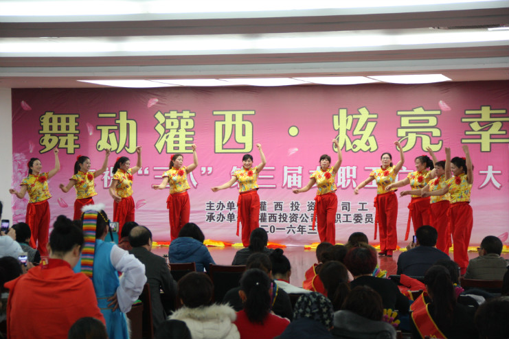 為了迎接第106個國際“三八”婦女節(jié)的到來,3月8日上午,灌西投資公司舉辦了“舞動灌西·炫亮幸福”第三屆女職工廣場舞大賽。這次比賽邀請了尚慶葉等七名集團(tuán)公司各單位原女工主任擔(dān)任評委,做到了公平、公正,比賽成績充分顯示了各自的真實水平。來自全公司各單位共11支參賽隊伍給大家來了精彩的表演,觀看比賽的職工群眾200余人。