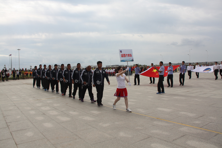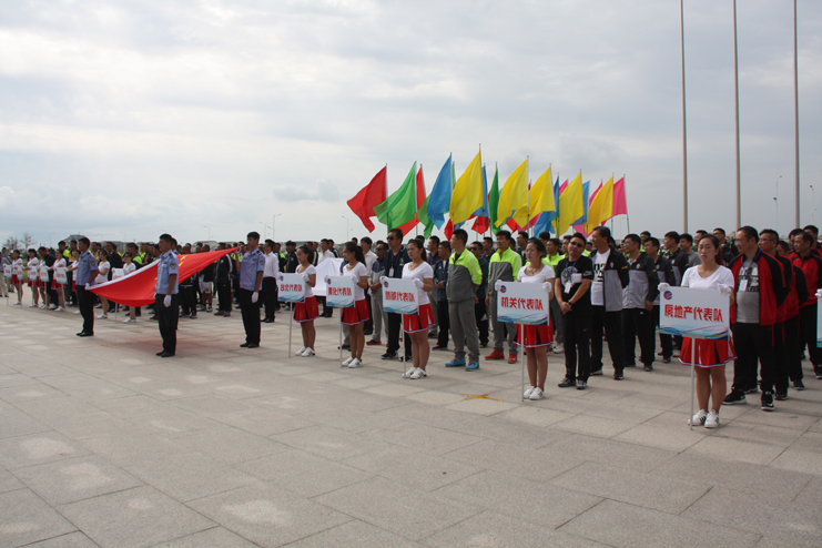 9點整開始舉行開幕式,在雄壯的《運動員進(jìn)行曲》中,8名司旗手分別手托國旗和集團(tuán)公司司旗,24名彩旗手高舉五彩旗首先入場。緊接著,灌西代表隊、臺北代表隊、供電代表隊、黃化制鈣代表隊、利海代表隊、氯堿代表隊、徐圩代表隊、機關(guān)代表隊、華茂代表隊、房地產(chǎn)代表隊、氨綸代表隊、新材料代表隊12支代表隊、130余名運動員以及裁判組成員依次入場。
