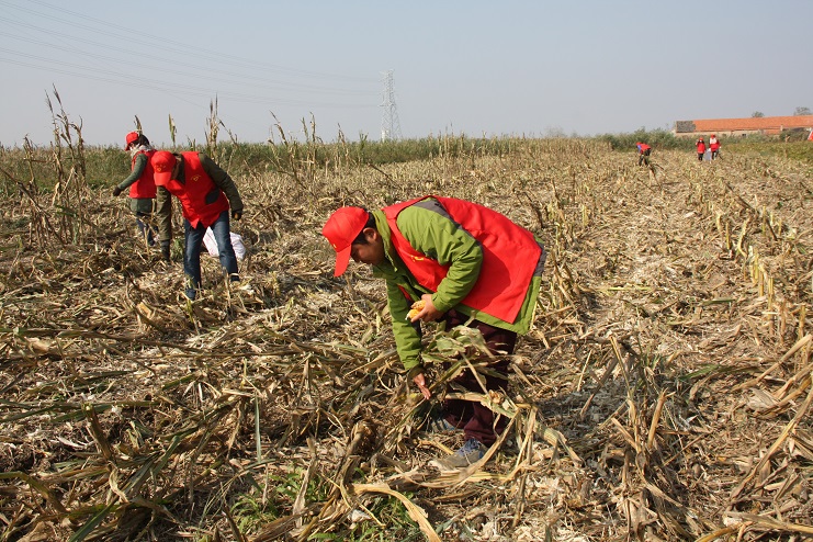 目前,位于柴門居民點(diǎn)附近的灌西實(shí)業(yè)公司農(nóng)田已進(jìn)入作物收獲期,由于所種玉米已經(jīng)完全成熟,且經(jīng)歷了一次大風(fēng)降溫天氣,所以在機(jī)械進(jìn)場(chǎng)作業(yè)前,有部分玉米已經(jīng)掉落在了地上,如不及時(shí)撿拾,將造成極大浪費(fèi)。公司團(tuán)委在得知這一消息后,立即組織近十名青年志愿者利用中午休息時(shí)間,到該公司農(nóng)田開展撿拾散落玉米志愿服務(wù)活動(dòng)?;顒?dòng)中,大家手拿編織袋,排成橫排仔細(xì)搜尋并緩慢向前推進(jìn)。由于玉米皮與秸稈顏色相近且混雜在一起很難分辨,因此大家在撿拾過程中不僅需要認(rèn)真搜尋,有時(shí)還需要彎腰翻動(dòng)秸稈,以最大限度的不遺漏任何一個(gè)散落的玉米。
