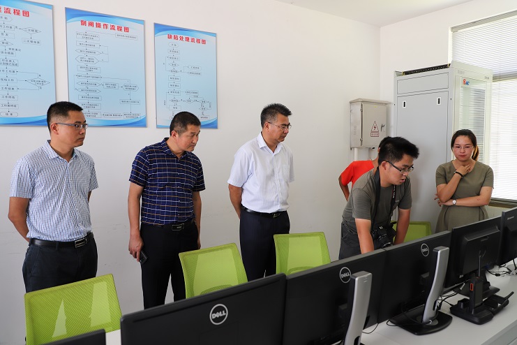 在現(xiàn)場負(fù)責(zé)人員的陪同下,考察組一行參觀了“漁光一體” 池塘,詳細(xì)了解了項(xiàng)目的建設(shè)規(guī)模、投資總量、裝機(jī)容量、智能管理系統(tǒng)以及養(yǎng)殖狀況,并在控制室實(shí)時(shí)觀看了當(dāng)天的發(fā)電情況。隨后考察組一行還觀看了項(xiàng)目有關(guān)情況的宣傳片,對整個(gè)漁光一體項(xiàng)目有了更深入的了解。