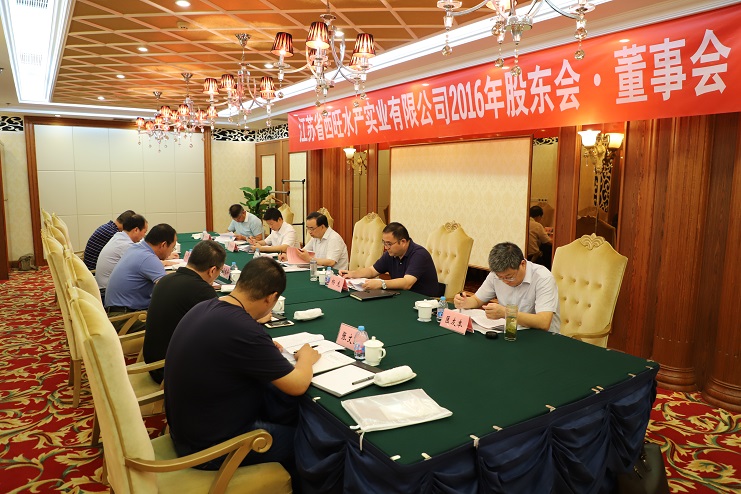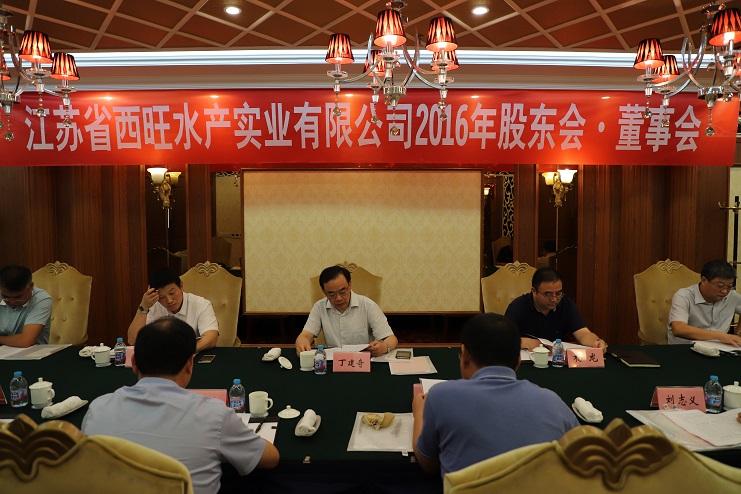 8月24日,江蘇省西旺水產(chǎn)實(shí)業(yè)公司2016年股東會、董事會在墟溝召開,省沿海開發(fā)集團(tuán)總經(jīng)理丁建奇、副總經(jīng)理周金陽,連云港市工業(yè)投資集團(tuán)董事長楊龍、總會計(jì)師匡友本等股東代表、董事代表出席了會議。
