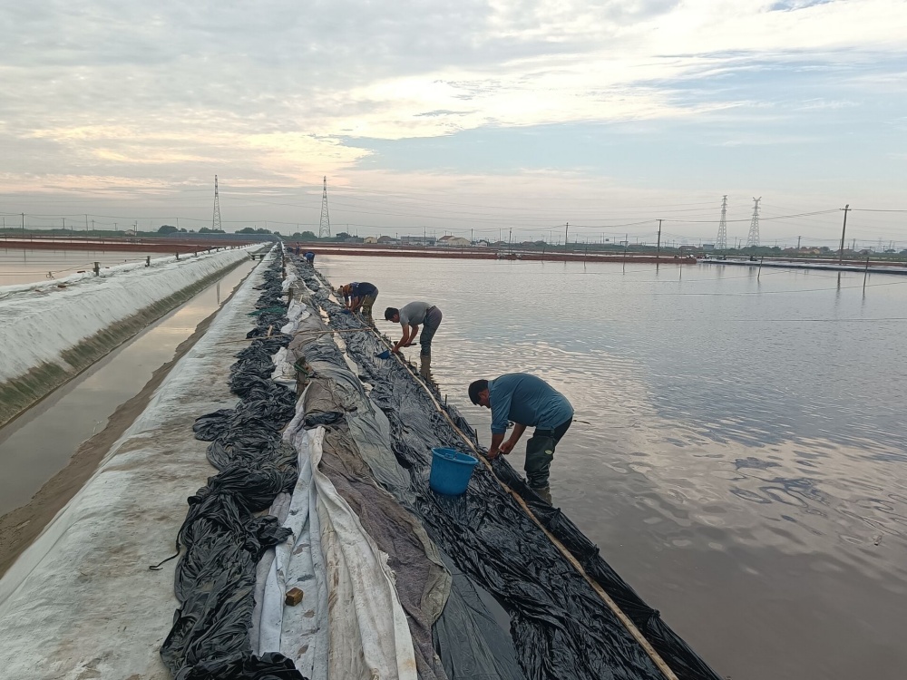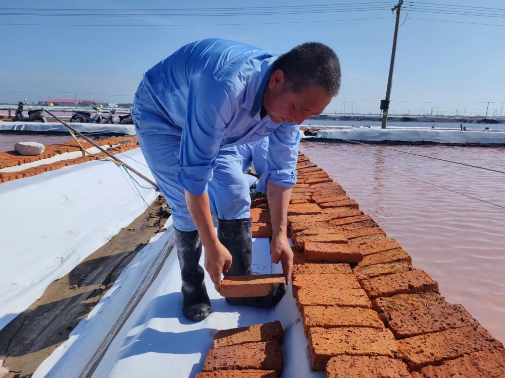 鏖戰(zhàn)酷暑,保目標(biāo)。當(dāng)前,正是原鹽生產(chǎn)的關(guān)鍵時(shí)期,面對(duì)高溫酷暑的嚴(yán)重考驗(yàn),該公司干部職工迎難而上,戰(zhàn)高溫斗酷暑、搶晴天保生產(chǎn),全力投入到高溫生產(chǎn)、保鹽保鹵等工作中,及時(shí)修補(bǔ)塑布,加強(qiáng)塑布收放系統(tǒng)維護(hù)保養(yǎng),隨時(shí)做好拉塑布準(zhǔn)備工作;管理人員以上率下,實(shí)施24小時(shí)現(xiàn)場(chǎng)值班機(jī)制,強(qiáng)化除硫制鹽工藝,抓實(shí)抓細(xì)原料鹵水、結(jié)晶池等源頭過程管控,確保全年產(chǎn)鹽60萬噸。驕陽烈日下,萬畝銀灘鹵水潺潺、“五彩斑斕”,產(chǎn)業(yè)工人在39℃高溫的戶外勞作,在熱氣蒸人的鹵水鹽田里,揮汗如雨,構(gòu)成了一幅最美的“鹵上芭蕾”。(許東彥)