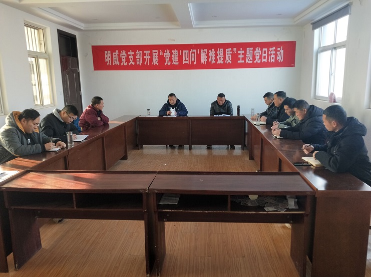 12月22日上午,明威黨支部在三樓活動室開展“黨建‘四問’解難提質(zhì)”主題黨日活動。明威黨支部書記葛高平主持座談,13名黨員及入黨積極份子參加?,F(xiàn)場,書記葛高平首先傳達(dá)了投資公司黨委《關(guān)于開展“黨建‘四問’解難提質(zhì)”主題黨日活動的通知》的文件精神。與會黨員和入黨積極份子認(rèn)真學(xué)習(xí)文件精神,積極參與討論。