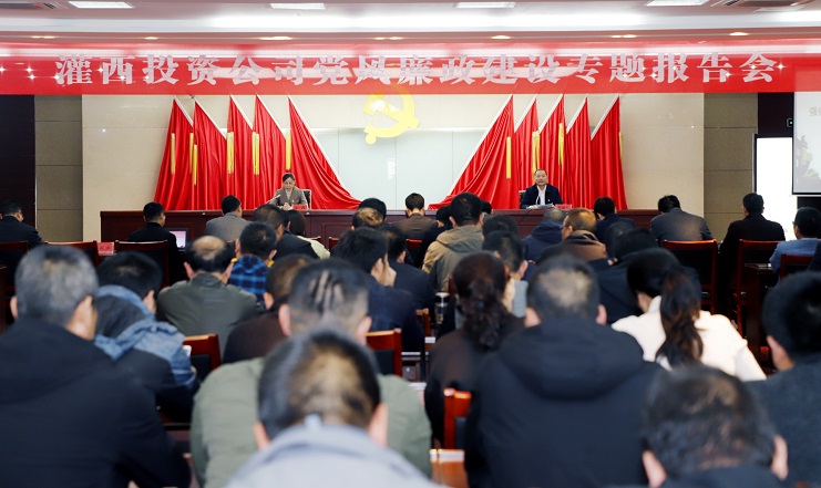 11月17日下午,灌西投資公司邀請集團紀委書記汪群在機關(guān)五樓會議室為黨員干部作黨風(fēng)廉政建設(shè)專題報告。投資公司黨委書記、董事長、總經(jīng)理李國文主持會議,公司領(lǐng)導(dǎo)班子成員、各單位黨政負責(zé)人、共建單位神特、奧神紀檢人員、機關(guān)全體管理人員100余人參加會議。