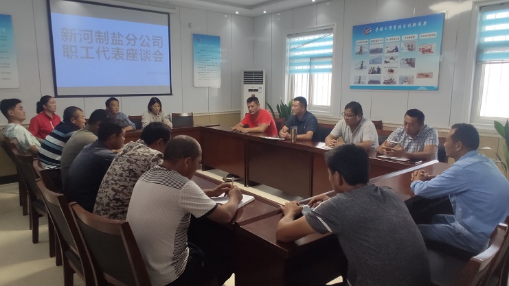根據(jù)投資公司工會要求,8月30日下午,新河制鹽分公司工會在支部活動室召開職工代表座談會,參加座談會的人員有公司管理人員代表、班長代表、黨員代表、女工代表、普通職工代表。