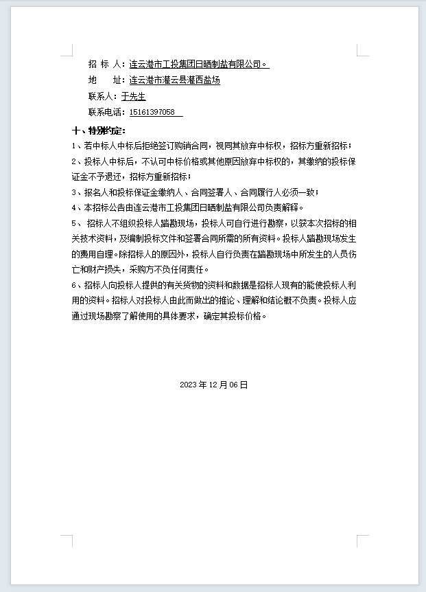 連云港市工投集團(tuán)日曬制鹽有限公司機(jī)油等物資招標(biāo)公告