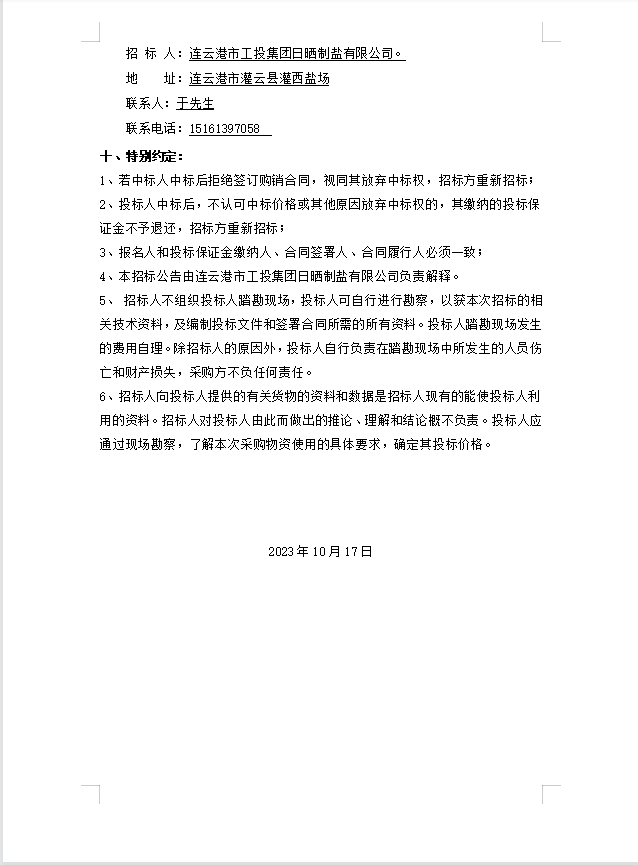 連云港市工投集團日曬制鹽有限公司玻璃纖維桿招標(biāo)公告