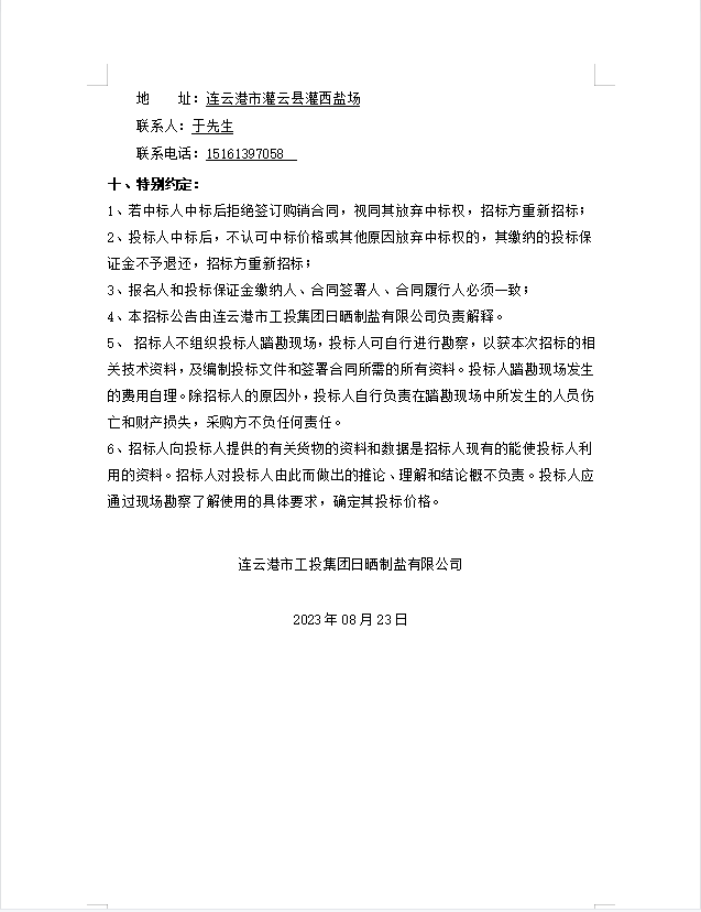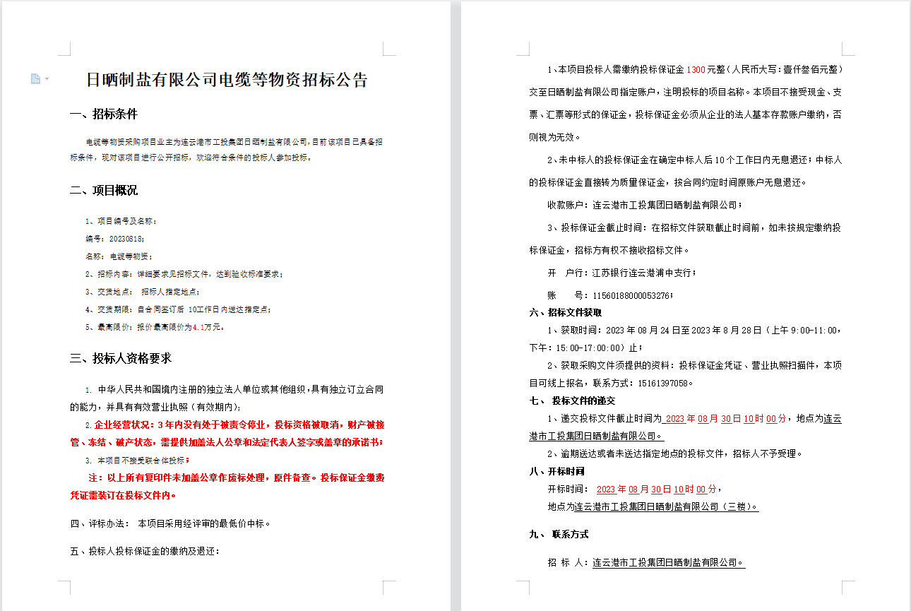 日曬制鹽有限公司電纜等物資招標(biāo)公告