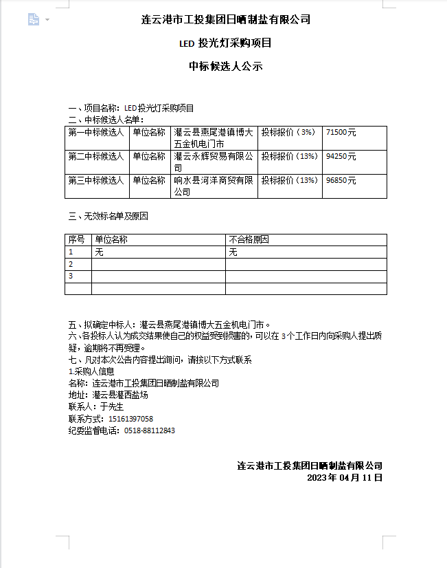 連云港市工投集團(tuán)日曬制鹽有限公司