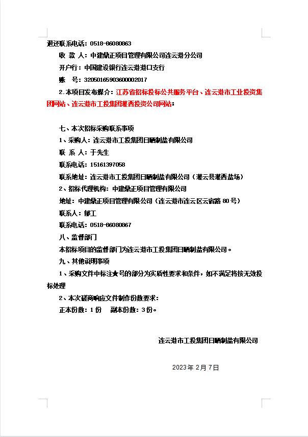 連云港市工投集團(tuán)日曬制鹽有限公司滌綸短纖針刺非織造土工布招標(biāo)公告