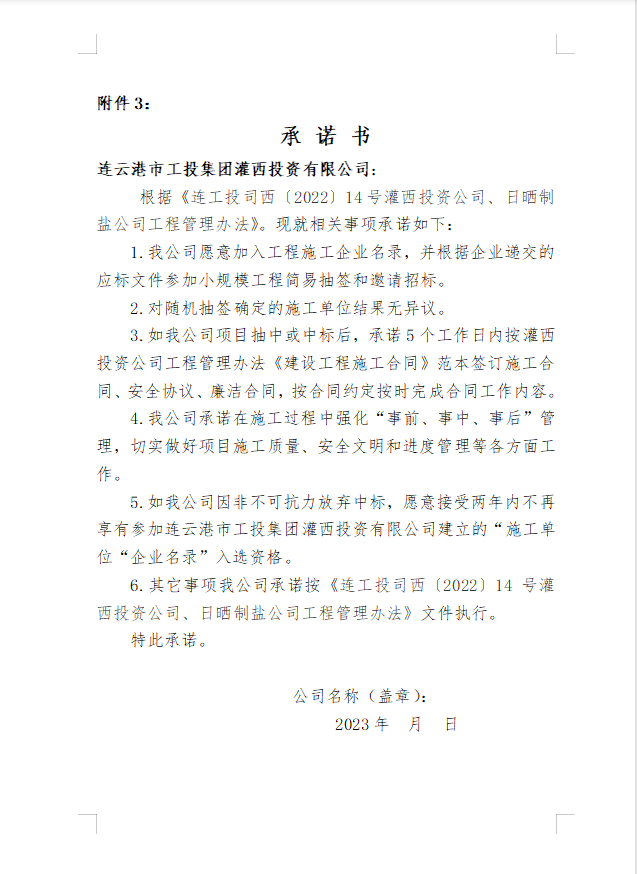 灌西投資有限公司 日曬制鹽有限公司關(guān)于建立國(guó)有資金投資小規(guī)模工程施工“企業(yè)名錄”的公告