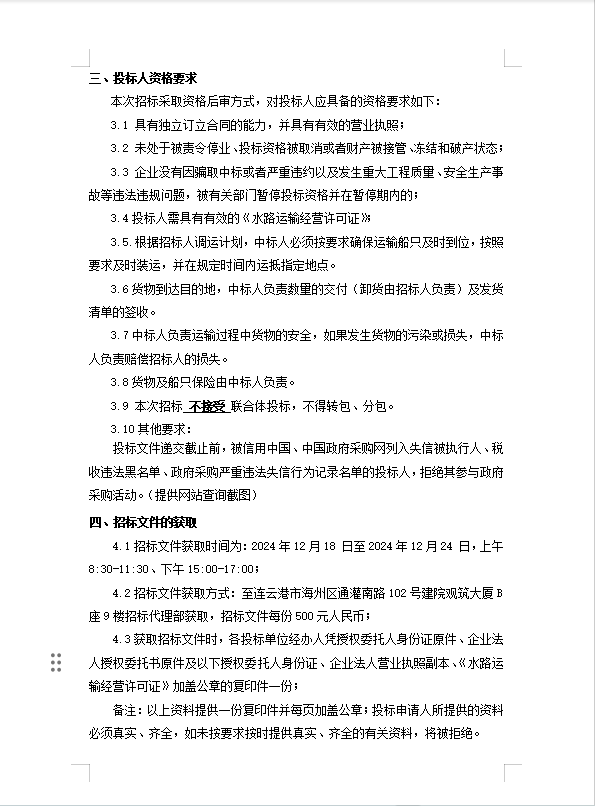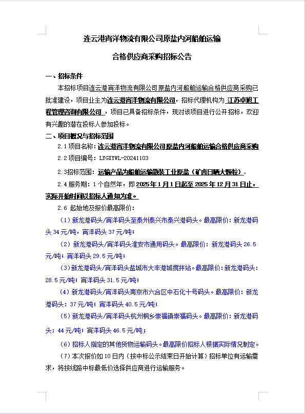 連云港宵洋物流有限公司原鹽內(nèi)河船舶運輸合格供應(yīng)商采購招標(biāo)公告