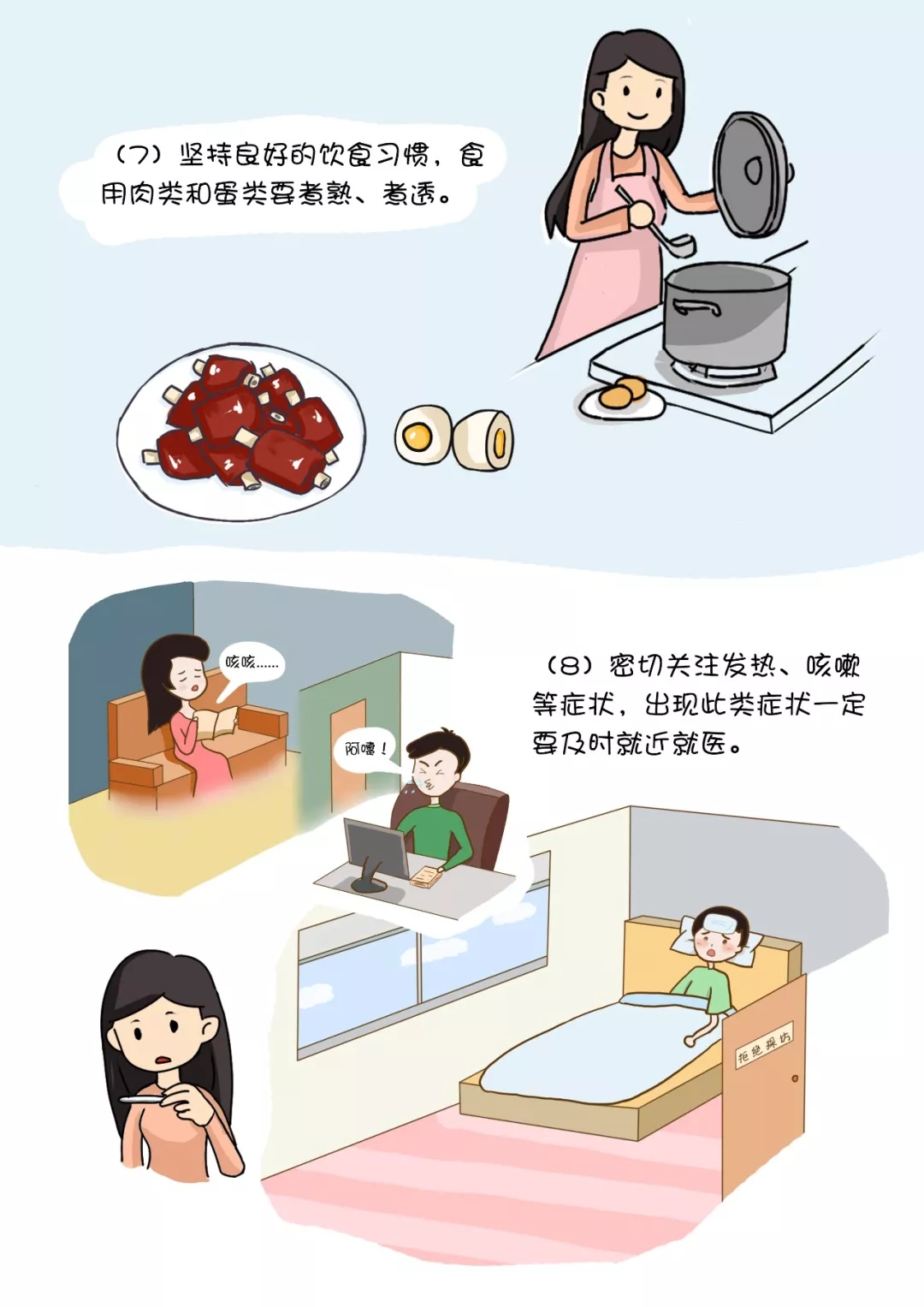 (7)堅持良好的飲食習(xí)慣,食用肉類和蛋類要煮熟、煮透。