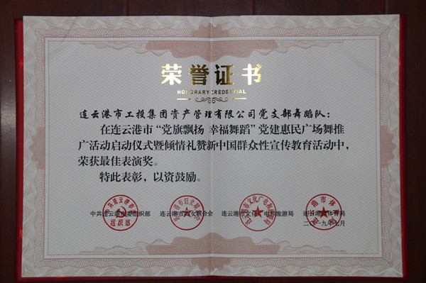 7月16日,連云港市“黨旗飄揚幸福舞蹈”黨建惠民廣場舞推廣活動啟動儀式暨群眾性宣傳教育活動在市文化藝術(shù)中心舉行。啟動儀式上,來自工投集團資產(chǎn)管理公司舞蹈隊登臺展演,榮獲市委組織部、市婦聯(lián)、市文廣旅局、市體育局聯(lián)合頒發(fā)的“最佳表演獎”。 為了參加這次活動,公司舞蹈隊12名隊員進行了近一個月的辛苦排練。隊員們在表演中動作精準,以零失誤完成各個動作,獲得觀眾熱烈掌聲和高度評贊。此次登臺演出,充分展示了工投集團職工的精神面貌和公司舞蹈隊廣場舞的扎實基礎(chǔ)。 (資產(chǎn)管理公司宣) |