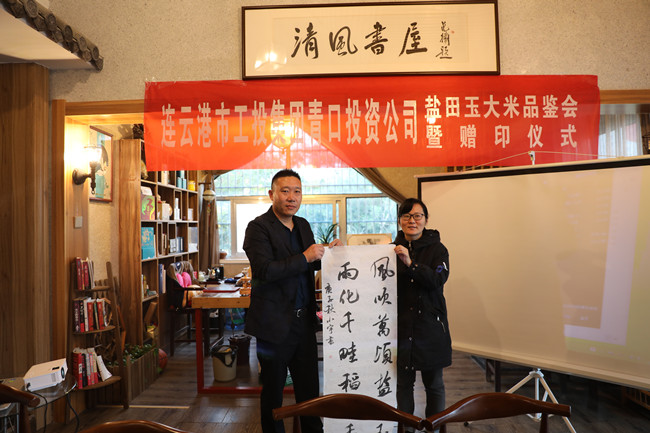 10月16日,青口投資公司米業(yè)營銷中心在海州區(qū)清風書屋開展“鹽田玉大米品鑒會暨贈印活動”。投資公司董事長胡傳法、中國書法家協(xié)會會員汪鐵穎以及部分連云港市海州區(qū)書法家協(xié)會會員參加活動。