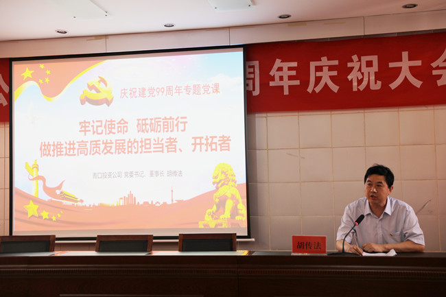 為了慶祝中國(guó)共產(chǎn)黨建黨99周年,繼承和發(fā)揚(yáng)黨的光榮傳統(tǒng),彰顯基層黨組織的戰(zhàn)斗堡壘作用和黨員先鋒模范作用,6月28日上午,青口投資公司隆重召開紀(jì)念建黨99周年慶祝大會(huì)暨“七一”表彰大會(huì)。會(huì)議由黨委副書記、工會(huì)主席梁永主持,全體領(lǐng)導(dǎo)班子成員、各單位黨政負(fù)責(zé)人、優(yōu)秀黨員代表、機(jī)關(guān)全體管理人員參加會(huì)議。