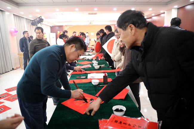 春節(jié)前夕,喜氣洋洋,為了營造祥和歡樂的節(jié)日氛圍,弘揚(yáng)中國傳統(tǒng)文化,公司邀請(qǐng)連云港市簡帛書法協(xié)會(huì)的老師們來到青口公司,義務(wù)為民寫春聯(lián),送祝福。