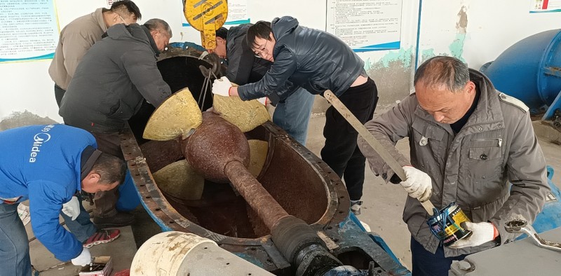 隨著天氣漸冷,為維護(hù)揚(yáng)水站機(jī)械設(shè)備的精度和性能,延長設(shè)備使用壽命,近日,生產(chǎn)生活服務(wù)中心揚(yáng)水站班組加班加點對機(jī)房內(nèi)所有水泵進(jìn)行大修保養(yǎng)。