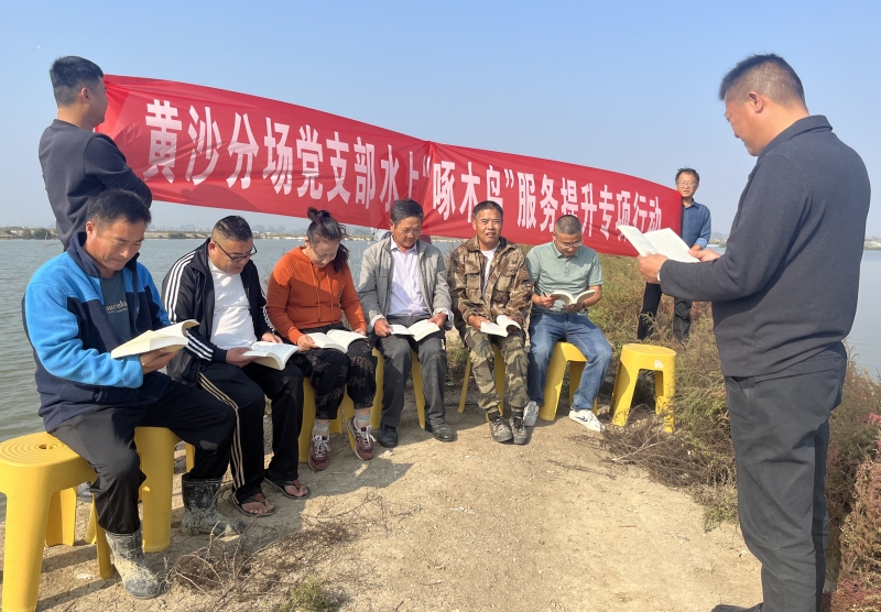 近日,黃沙分場黨支部開展水上“啄木鳥”服務(wù)提升行動(dòng),組織養(yǎng)殖戶黨員和技術(shù)能手聚在塘頭學(xué)習(xí)黨的二十大報(bào)告,開展養(yǎng)殖技術(shù)培訓(xùn)和生產(chǎn)服務(wù),切實(shí)打通黨建引領(lǐng)、服務(wù)養(yǎng)殖的“快速通道”。(盧伯斌)